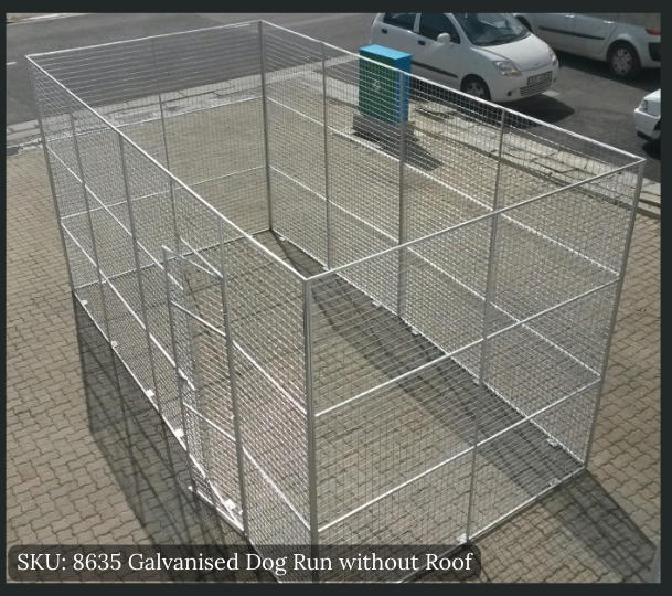 These dog runs are designed to your specifications. This includes custom dimensions and a range of electroplating, powder coating, or galvanizing finishes.