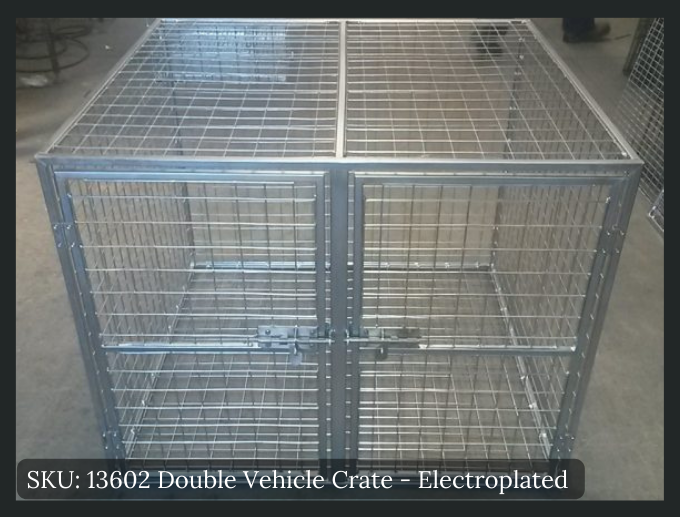 Our custom vehicle crates feature square tubing frames and are available as electroplated, powder coated or galvanized crates. This ensures that your crate is both durable and long-lasting.