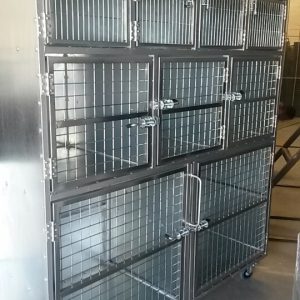This variation is a four-unit veterinary cage that has three smaller cages (50cm(L) x 50cm(H)) on top and one large cage (150cm(L) x 100cm(H)) at the bottom. The cage’s sturdy construction ensures that your pet stays safe and secure while in the vet’s care.