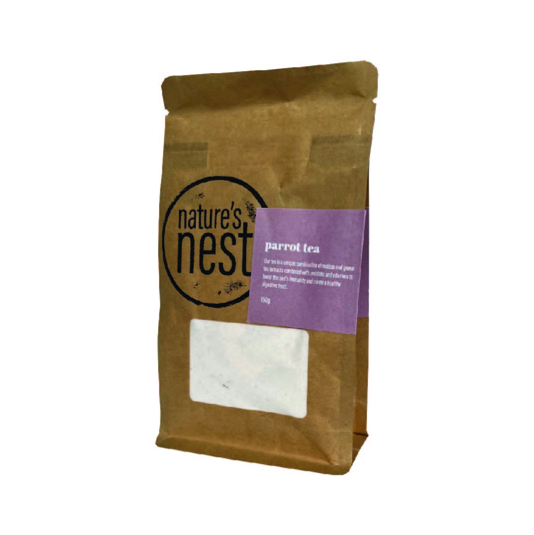 The Nature’s Nest Parrot Tea is combination of rooibos and green tea extracts that dissolves easily in water. It contains a probiotic and vitamins for immunity boosting benefits and for maintaining a healthy digestive tract.