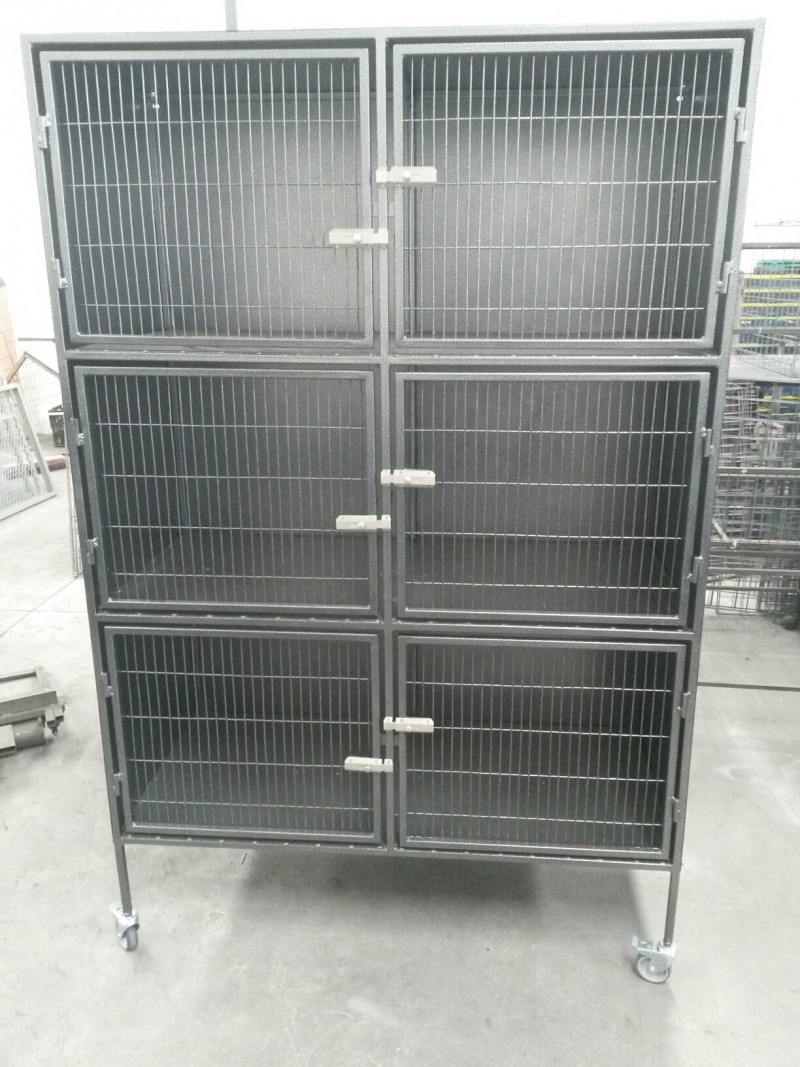 This variation is a three-unit parlour cage. The unit has three equally sized cages that each have double doors.